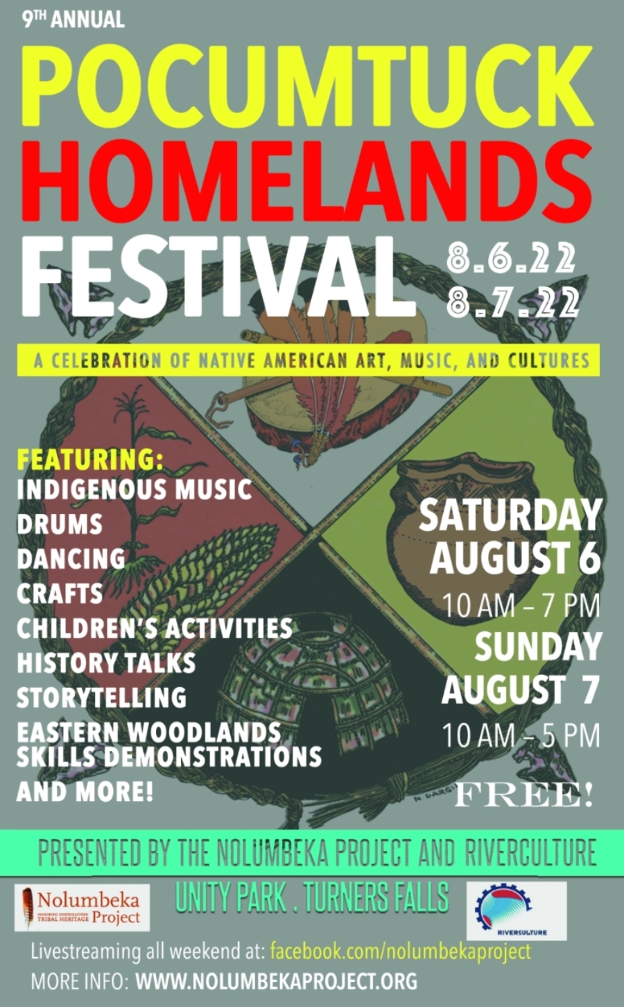 A Celebration of Native American Art, Music and Cultures, Unity Park, 1st St., Turners Falls/Peskeompskut. Featuring Indigenous music, drums, dancing, crafts, children’s activities, history talks, storytelling, Eastern Woodland skills demonstrations, and more.