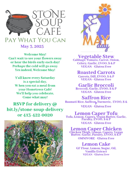 Saturday, May 3, 2025, 12:00 pm until 1:30 pm 399 Main Street, Greenfield, MA - Red Door on Hope Street