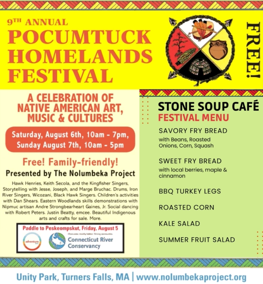 Next weekend Stone Soup Café will be serving up some tasty snacks at the Pocumtuck Homelands Festival at Unity Park in Great Falls all day Saturday and Sunday!