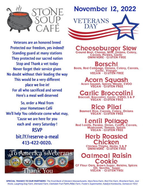 ---> What does Stone Soup Café mean to you? Leave us a voicemail on our Story Hotline: (413) 376 - 8277 or write your anonymous story here.