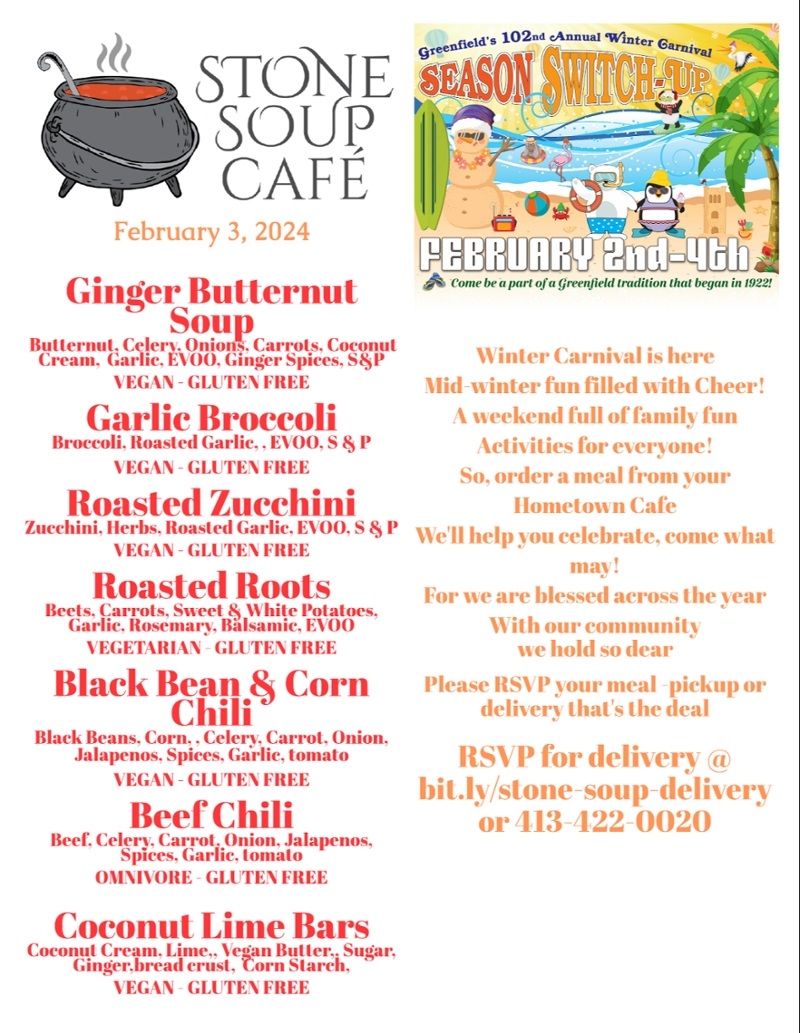 Saturday, February 3, 2024, 12:00 pm until 1:30 pm 399 Main Street, Greenfield, MA - Red Door on Hope Street