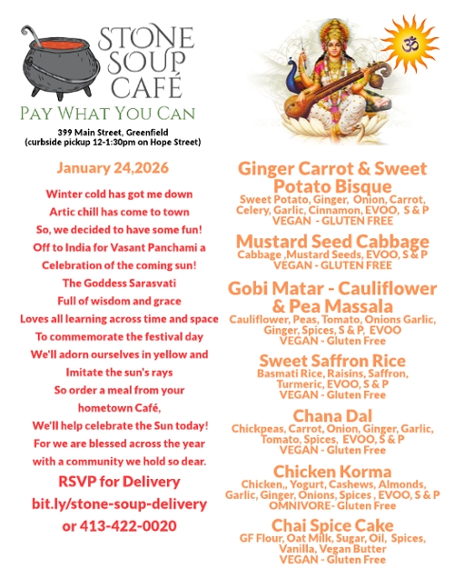 Saturday, January 24, 2026, 12:00 pm until 1:30 pm 399 Main Street, Greenfield, MA - Red Door on Hope Street