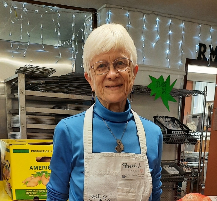 Aside from volunteering every Friday at the Café, Sherrill is a retired social worker, a Smith College alumna, a long-time political activist, and a regular guest columnist for the Daily Hampshire Gazette.
