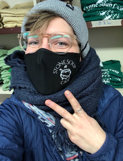 In light of the new CDC recommendation, instead of requiring double-masking at the Café, we are providing everyone with a customized fabric mask and filter insert-- four gorgeous layers of protection, so that we can keep doing this critical community work together. The masks are SUPER DUPER comfortable and have our cute lil’ Stone Soup logo screen printed on them by our fave local screen printer Tap Root Threads!