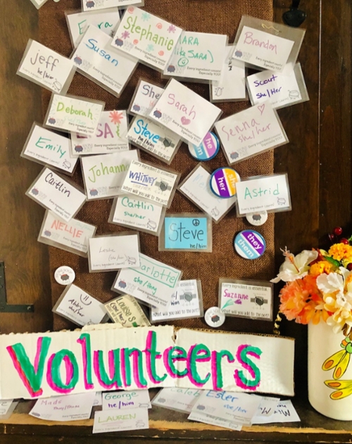 We could especially use extra hands for the 3:30-5:00 PM Welcome Committee shift (which includes greeters, line managers, and some folks to run the merch table) and the 1:00-3:30 PM Appetizer Prep shift (which includes making beautiful flower arrangments!).